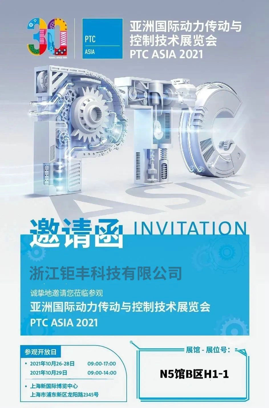 Vă mulțumesc foarte mult pentru sprijinul și dragostea dumneavoastră continuă pentru Jufeng! PTC ASIA Asia International Power Transmission and Control Technology Exhibition va începe la Shanghai New International Expo Center pe 26 octombrie 2021! La acel moment, vă vom aștepta la standul H1-1, Zona B, Sala N5, așteptăm cu nerăbdare vizita și îndrumarea dumneavoastră și așteptăm cu nerăbdare să lucrăm cu dumneavoastră mână în mână pentru a câștiga viitorul!