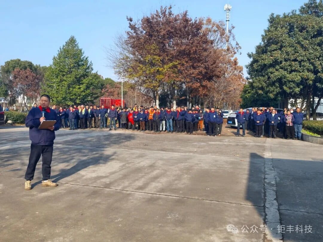 Pentru a spori gradul de conștientizare a siguranței la incendiu în rândul tuturor angajaților și pentru a îmbunătăți capacitățile de răspuns la incendiu, Jufeng Technology a efectuat un exercițiu de urgență pentru securitatea la incendiu pe 25 decembrie 2025. Exercițiul a fost efectuat în fabrica de EV și în vechea fabrică. Toți angajații au participat activ, toate legăturile au fost conectate fără probleme, iar exercițiul general a fost desfășurat fără probleme.