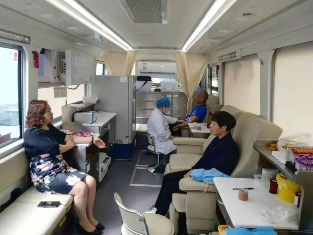 Imaginea arată vehiculul mobil pentru donarea de sânge al Băncii Centrale de Sânge din Shengzhou